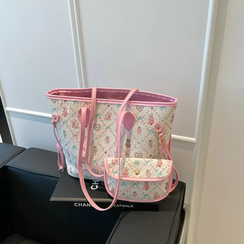 Lady’s Large Capacity Cartoon Print Woman’s Tote Bags Women’s Handbag with Wallet for Summer Shopping
